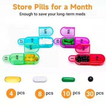 Monthly Pill Organizer with 32 Removable Compartments - 2x Daily, 30 Day Supply